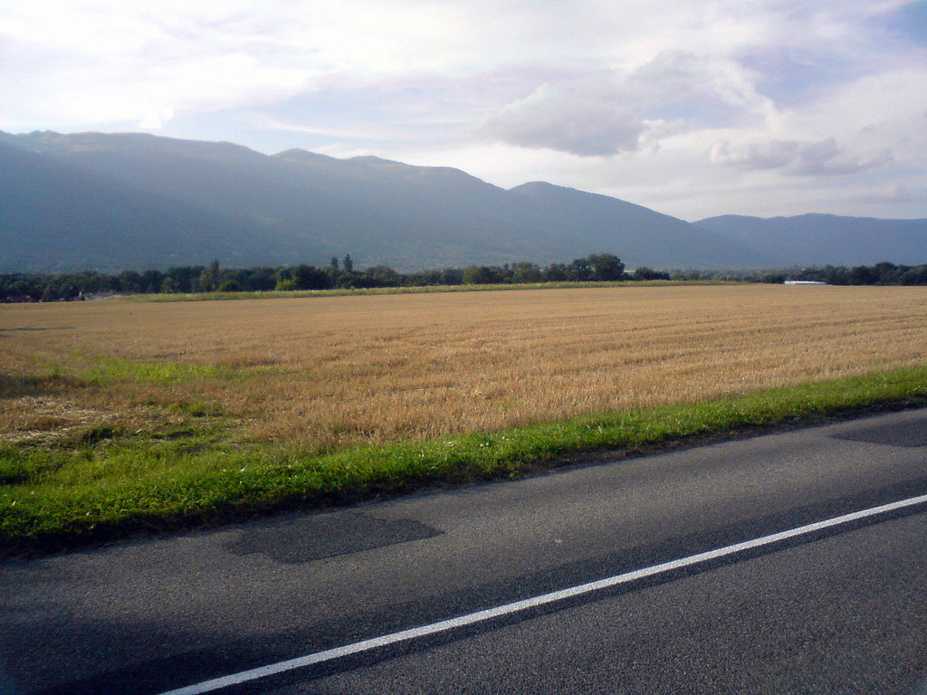 Никогда не был во Франции, но стоит в него зайти, сразу понимаешь, что попал именно в эту страну. Почему-то ощущения совсем другие, чем от Швейцарии. И от людей, и от просто чего угодно рукотворного. Утром в пятницу вдруг подумал, что надо бы получить печать, что я из Франции выехал, а то мало ли что. В этот раз в будке сидел негр, который сказал, что делать это не нужно, и что в Пэи Ба меня пустят и так. Опять-таки удивительное ощущение, мужик явно был не швейцарцем, а французом. В чём разница, совершенно невозможно сформулировать. Если пройти на запад через город, открывается вид на горы: