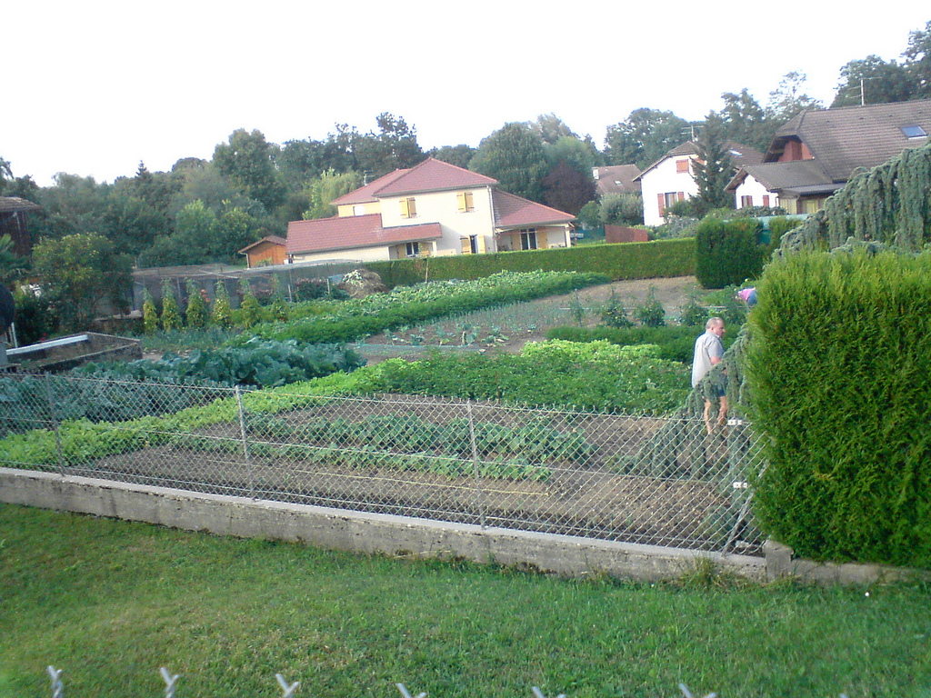 В основном здесь отдельные дома, как правило отгороженные высоченными заборами из кустарников, но вот на каком-то участке мужик с тёткой прямо выращивают всё своё: